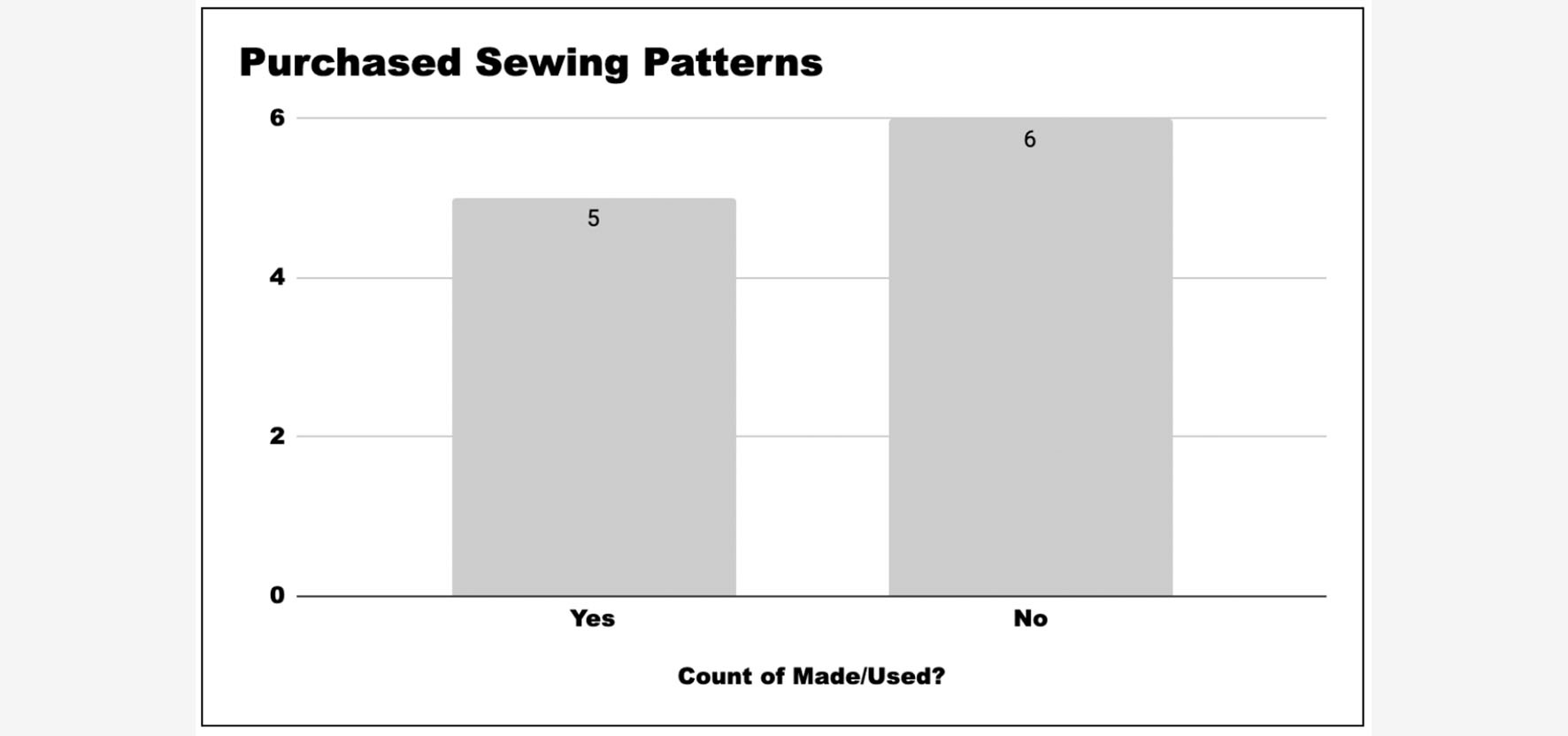 The same goes for patterns. I didn’t sew all purchased patterns, but sewed some more than once.